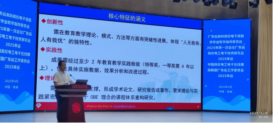 会上,中山大学刘川教授以“产教融合电子信息工程人才培养课程体系建设”为题,探讨如何通过校企协同优化课程设计;华南理工大学殷瑞祥教授结合国家级教学成果奖申报经验,系统解析材料组织与成果凝练的关键路径;暨南大学黄君凯教授则从“课程创新建设与教创赛实践”角度,分享教学竞赛与课程改革融合的创新模式。报告内容紧扣新时代高等教育改革方向,为参会院校提供可借鉴的实践经验。