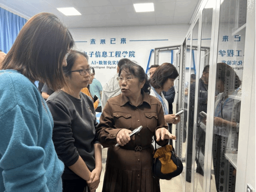 随后,访问团前往珠海科技学院电子信息工程学院,在院长司玉娟教授带领下,调研组重点考察了嵌入式系统实验室、AI+数智化实验室等专业实验室。双方围绕实验室设备迭代、课程体系优化等议题展开交流。司玉娟教授详细介绍了实验室在支撑理论教学与创新实践中的作用,并分享了校企共建“集成电路设计创新工坊”的实践经验,为我校电子信息工程专业的教学改革提供了新思路。