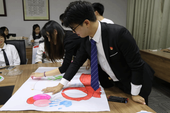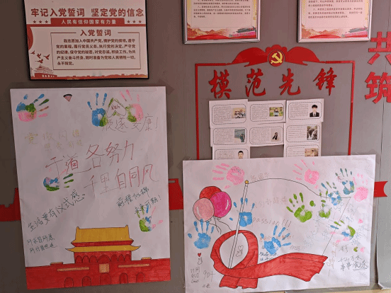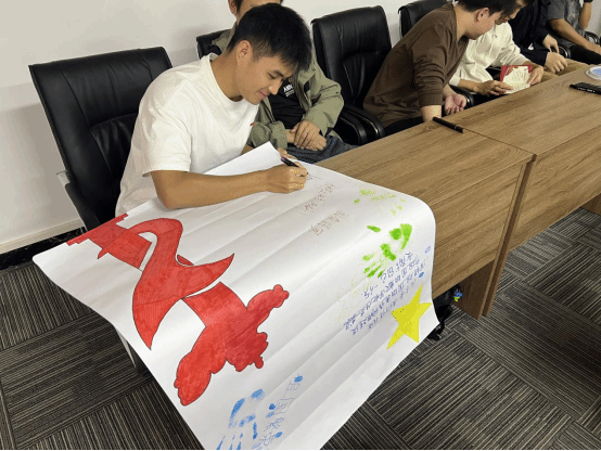 会议来到第四项议程“心心相印”活动,支部各位党员同志在纸上描绘国家的美好,书写着对祖国的寄语以及自己的未来目标。活动产生作品也张贴在电子系读报栏。本次活动象征着为祖国的繁荣发展贡献自己的力量,寓意着“为祖国添砖加瓦”的美好愿景。