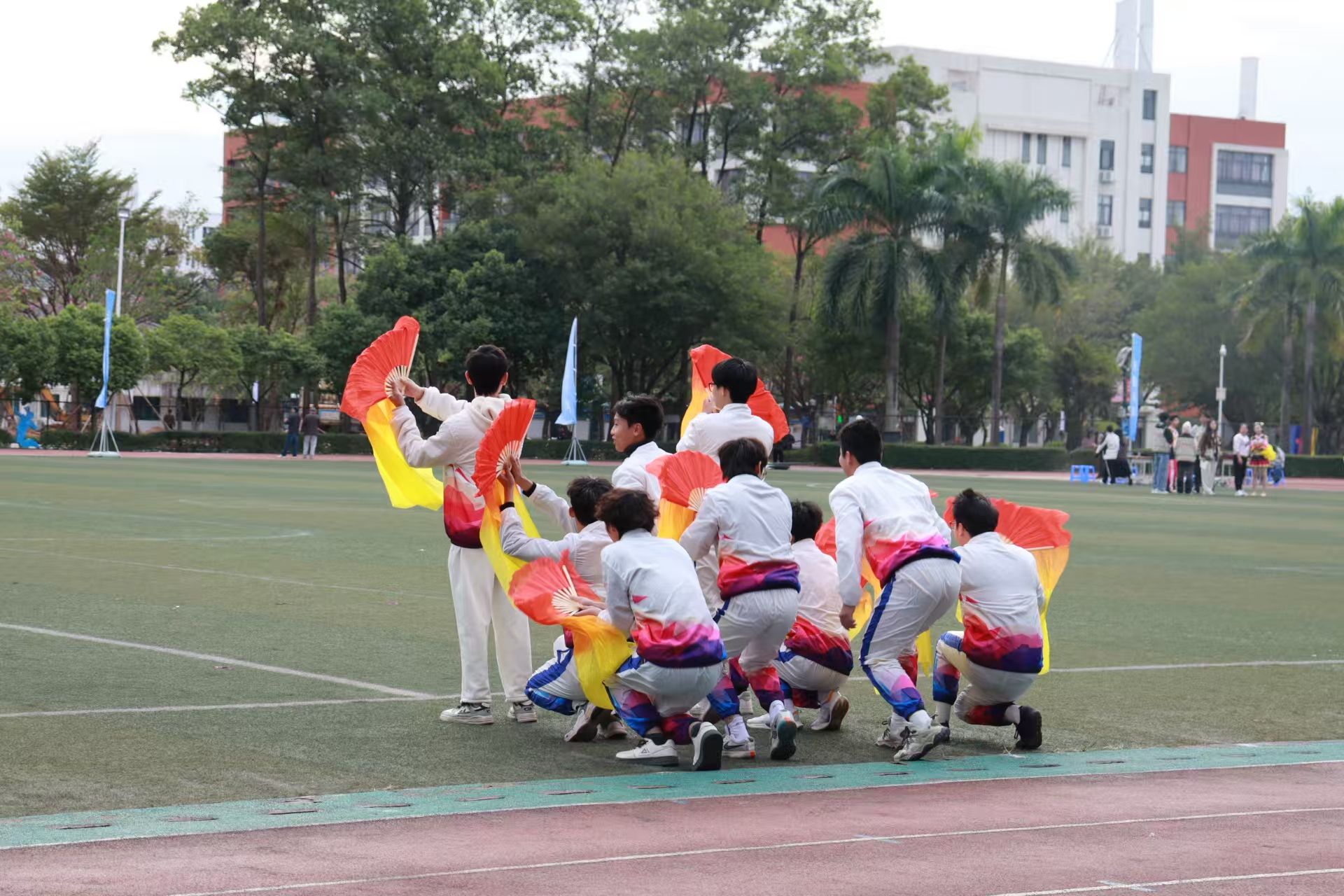 最后,我院与排舞协会联合献上“扇聚荣光”主题表演!彩扇开合流转东方韵味,队形变幻尽显青春活力,以整齐舞姿诠释体育精神与协作担当,为运动会添上灵动一笔。