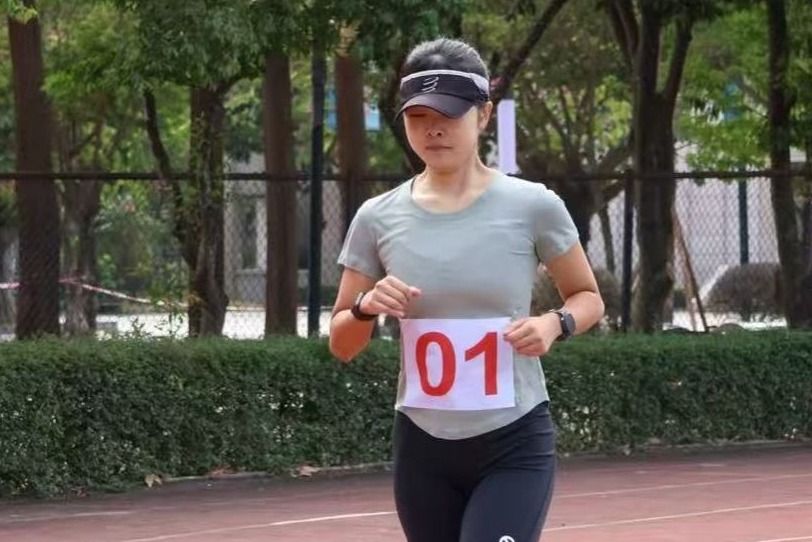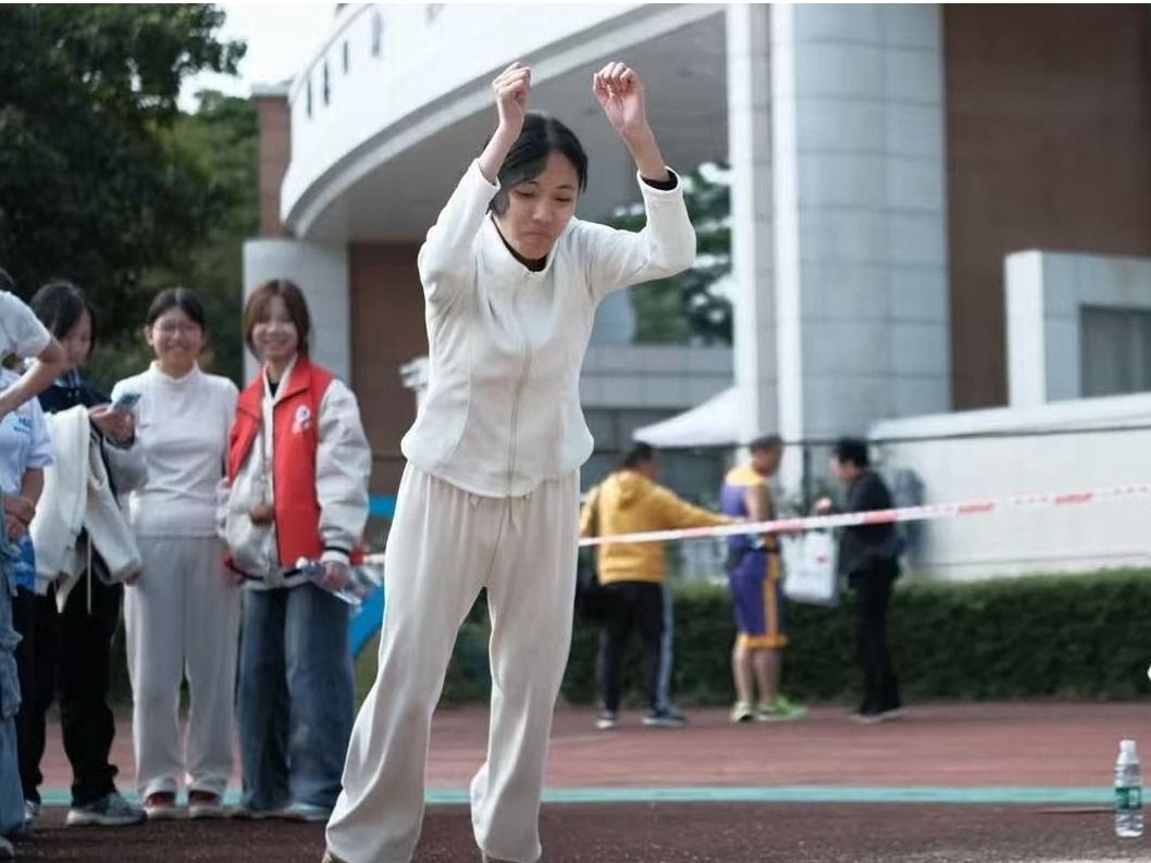 课堂育桃李,赛场绽芳华。课堂上,老师是耐心引路人:见学生皱眉便放缓语速重讲,将知识细细传递。赛场中,老师化身热血追光者:长跑时汗湿衣衫仍咬牙向前,跳远时蹬地腾空舒展身姿,沙粒沾衣也笑意不减。细腻与坚韧交织,成了学生心中的好榜样。