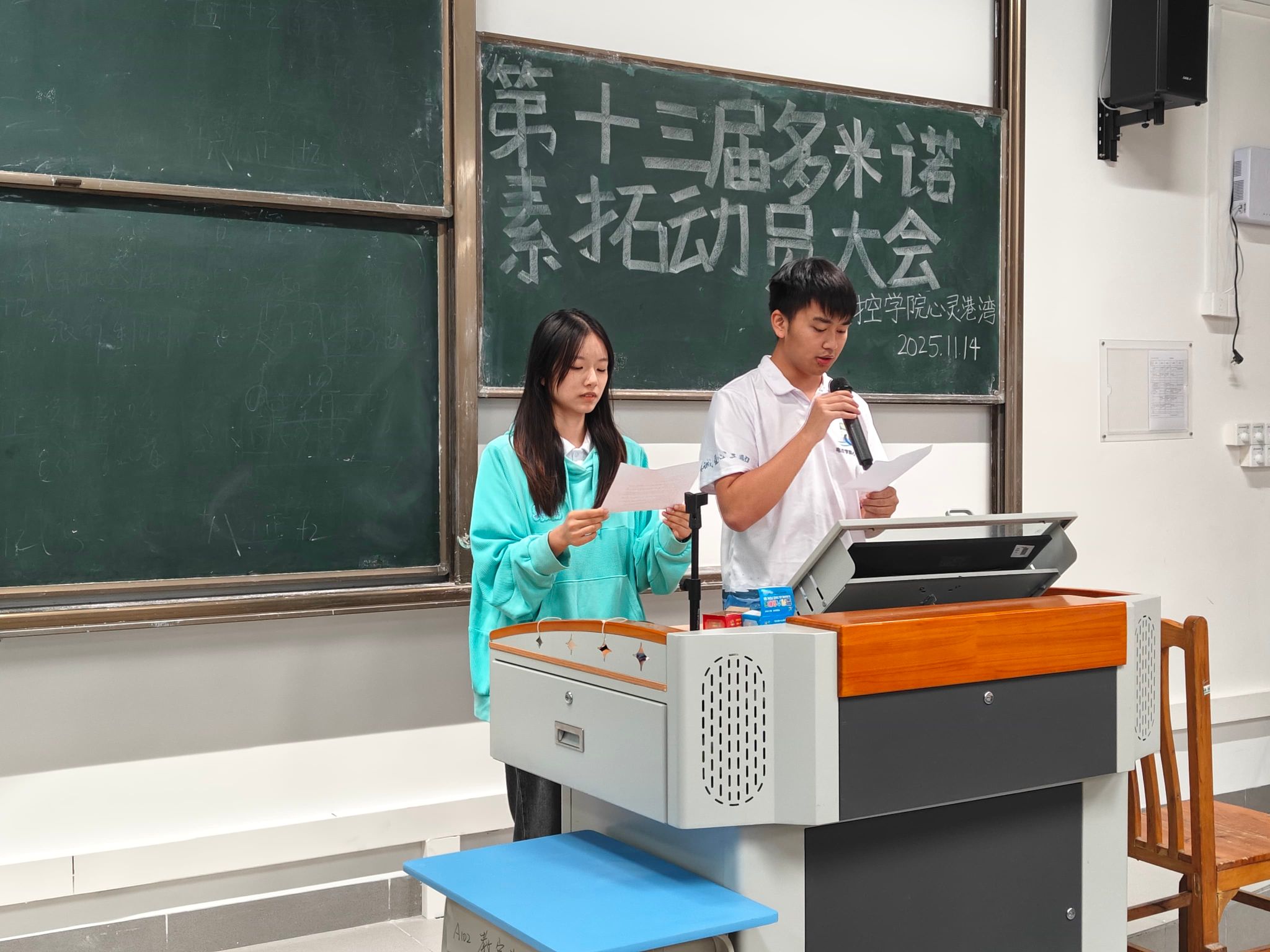 本网讯 电控学院心灵港湾于2025年11月14日星期五晚19:00在A102教室召开多米诺素质拓展运动会的动员大会,同时开展了主持人选拔和游戏试玩。参与本次大会的人员为心灵港湾全体成员。本次大会由文秘组组长吴智勇主持。