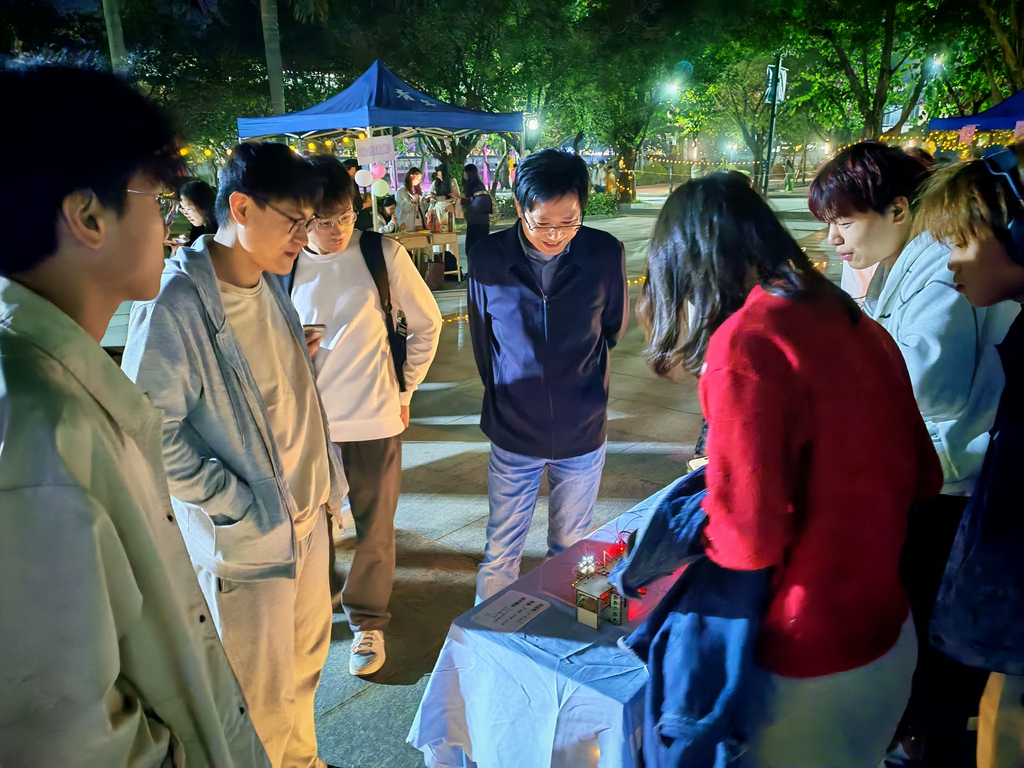 11月28日19:00,学院承办的第十六届校园文化艺术节暨第十四届灯光文化节在明德广场圆满举办。活动聚焦学生实践创新与自学能力培养,《活力大湾区 魅力新广州》《摩天轮》等兼具科技美感的灯光作品,与《莲亭灯语》等融合传统文化的作品惊艳亮相,游戏互动、才艺表演等环节点燃现场氛围,师生们沉浸式体验光影盛宴并为喜爱的作品投票。此次活动展现了学子们的创意与活力,彰显了科技与文化交融的魅力,让同学们在实践中绽放青春风采。