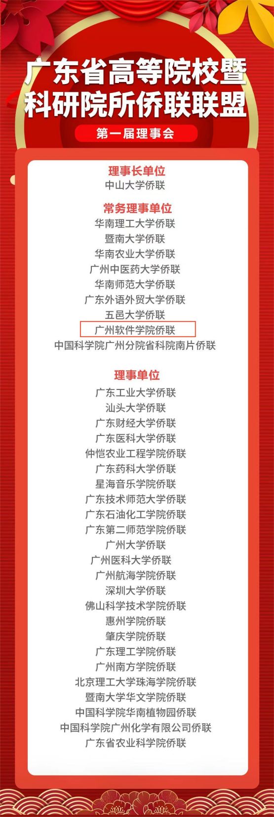 广东省高等院校暨科研院所侨联联盟第一届理事会名单(图源:南方+)
