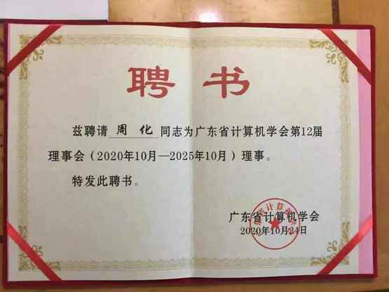 提到广东省计算机学会理事的身份,周化老师认为这不仅是一份荣誉,更是一份责任。作为广东省科学技术协会领导下的计算机技术工作者的群众性学术团体,广东省计算机学会旨在团结和组织计算机科学技术工作者,促进计算机科学技术的繁荣和发展。“我也将尽自己责任,积极推动我院教师与省计算机学会的良好交流。借助平台优势,提供更多优质学术交流资源,将更多高水平、高质量的学术活动推向全院师生,促进计算机科技人才的成长和提高。”周化老师谈到。