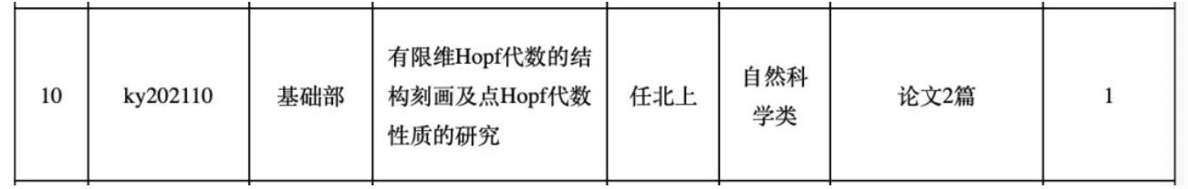 11月19日,学校正式公布2021年度科研项目立项名单,基础部任北上教授主持的“有限维Hopf代数的结构刻画及点Hopf代数性质的研究”课题获得学校立项(自然科学类)。