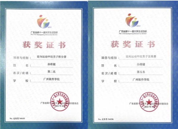 近日,2022广东省第十一届大学生运动会定向运动大赛落下帷幕,由基础部副主任黄志强领队,陈磊坡老师担任教练,孙维键、陆铭开、林金灿、肖文涛、胡茂峰、林泰安、魏玉锋、黄再妙、王诗颖、沈秀婷、黄子烨、黄嘉慧同学组成的广软定向队夺得佳绩:孙维键同学获得定向运动甲组男子积分赛银牌和定向运动甲组男子百米赛第五名。另外,孙维键、肖文涛、陆铭开同学和陈磊坡老师获得定向运动甲组体育道德风尚奖。这是我校定向队自参加大运会有史以来取得的最佳成绩。