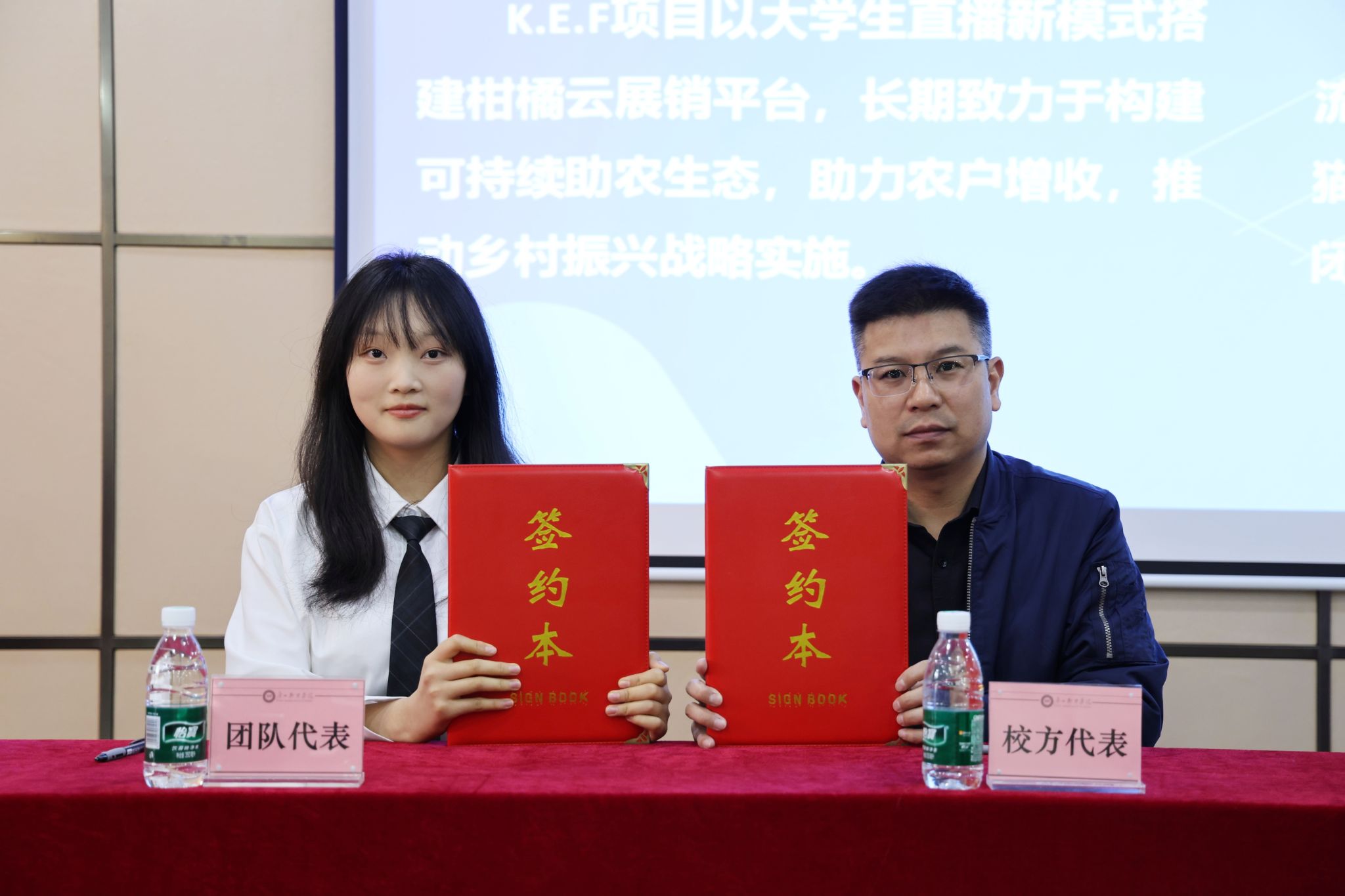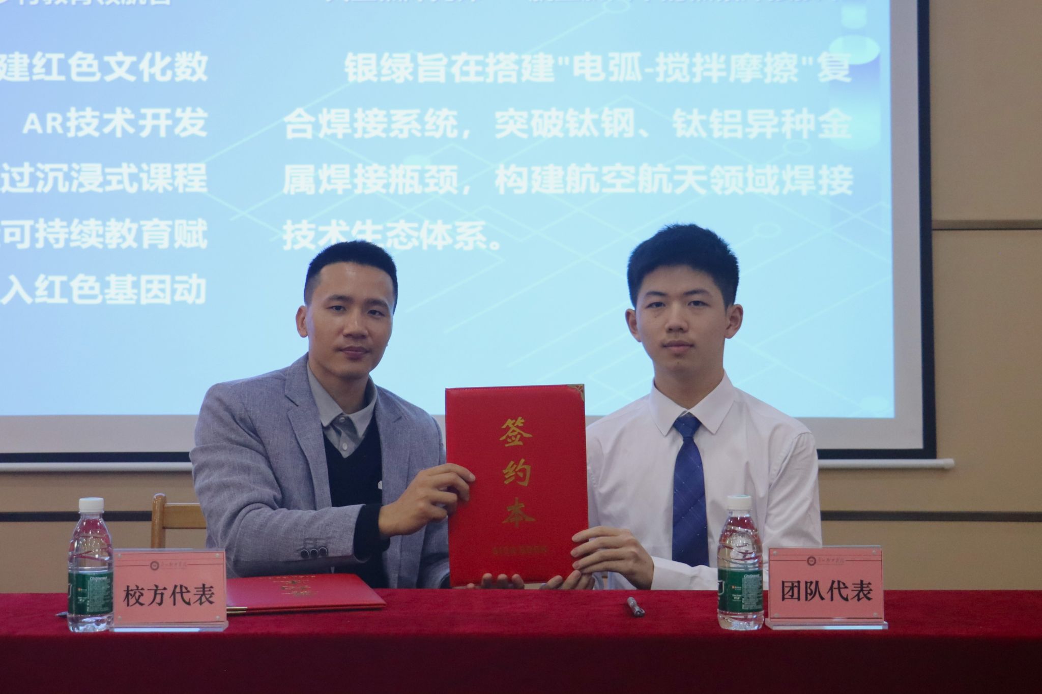 签约仪式上,31支团队代表依次与校方签署入驻协议。本期团队呈现三大亮点:一是跨学科融合特征显著,60%以上的团队由软件与人工智能学院、电子信息与控制工程学院、创意设计学院、数字经济与管理学院等跨学科专业的学生联合组建;二是产学研深度联动,多个项目已与行业企业建立合作意向;三是前瞻性视野突出,10余支团队聚焦人工智能、智慧养老、个性化医疗等赛道。