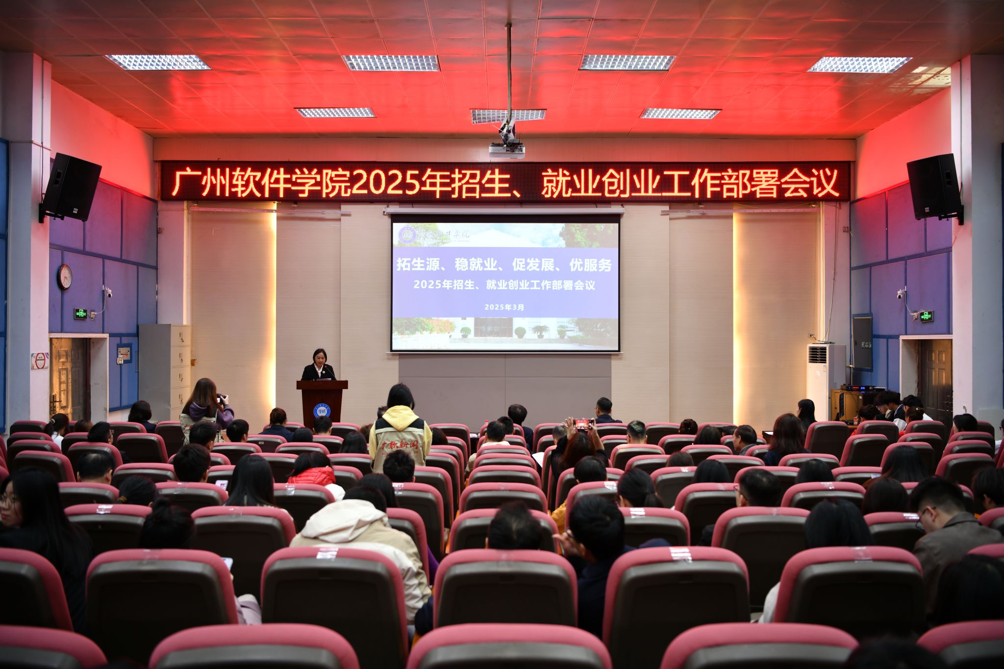 本网讯 3月18日下午,我校在礼堂一厅召开2025年招生就业创业工作部署会议。会议总结了学校2024年度招生就业创业有关工作,进行了先进集体工作经验分享,表彰了一批先进集体和个人,并对2025年度相关工作进行全面部署。