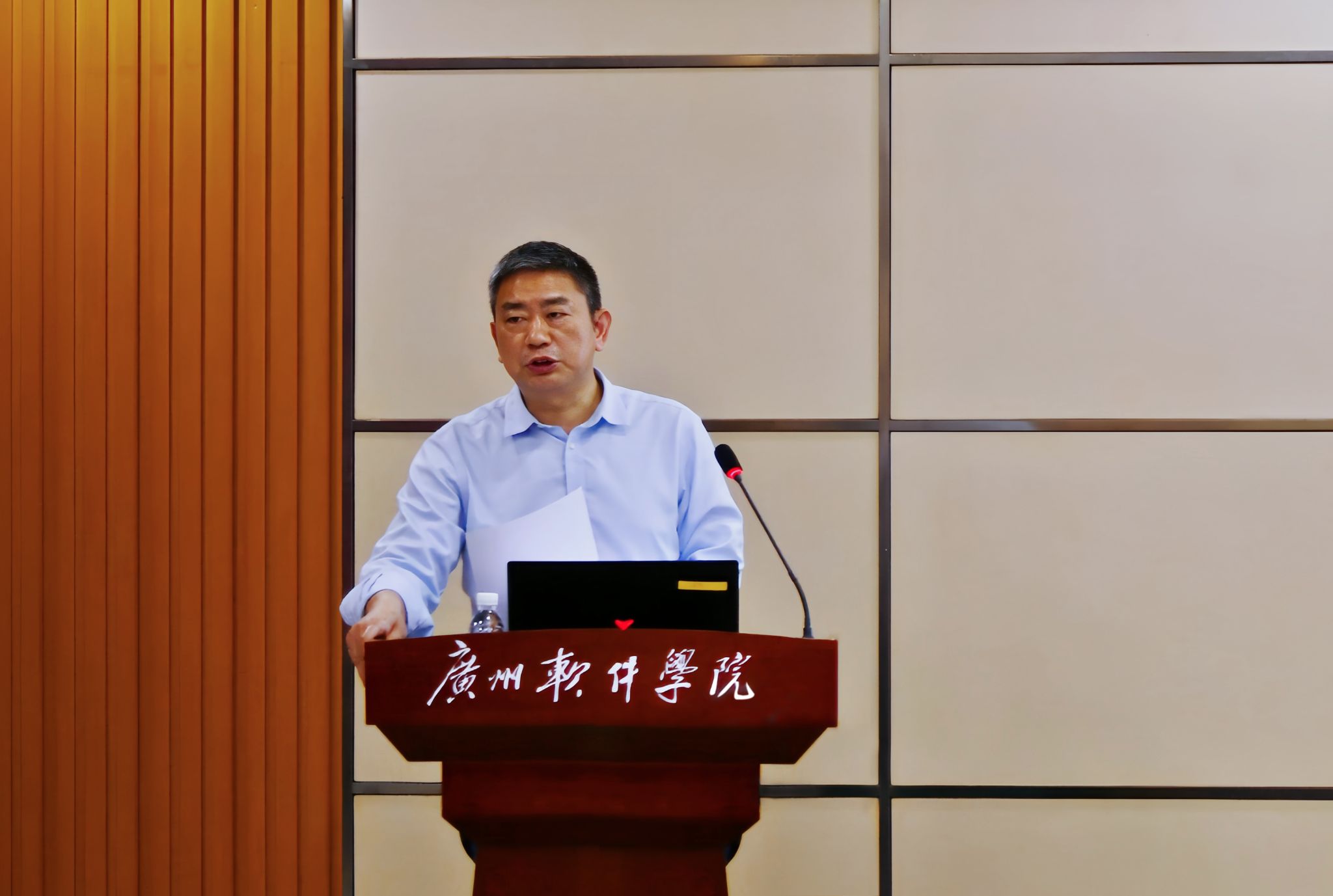 袁志副校长通报了广州软件学院江门校区考察评议情况及校区筹备工作安排。他指出,江门校区的建设不仅是学校发展的重要里程碑,更将大大优化学校办学布局、拓展办学空间、提升办学条件和实力,同时也能增强学校的社会影响力和服务地方的能力。袁志详细介绍了江门校区的建设进展情况,重点强调当前已完成和即将完工的各项设施及项目,并明确了要谋划好开学各项准备工作这一目标。袁志强调,江门校区的建设与筹备工作将围绕“保开学、保稳定、保运行”这三个关键词进行,加快推进江门校区建设,确保办学条件、组织和人员、制度机制和规程、业务细节的准备等方面工作的到位,以保障江门校区顺利开学并实现稳定运行。袁志呼吁全校上下齐心协力,共同关心支持校区开学准备,努力使校区开学实现学生满意、教师满意、家长满意、社会满意这“四个满意”的目标。