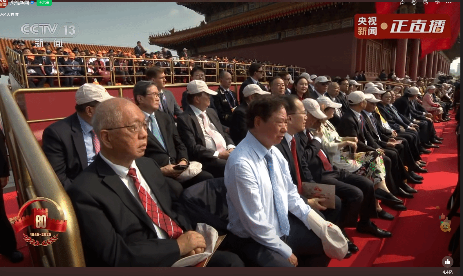 梁冠军董事长(第一排左3)在天安门城楼观看阅兵(图源:央视新闻直播)