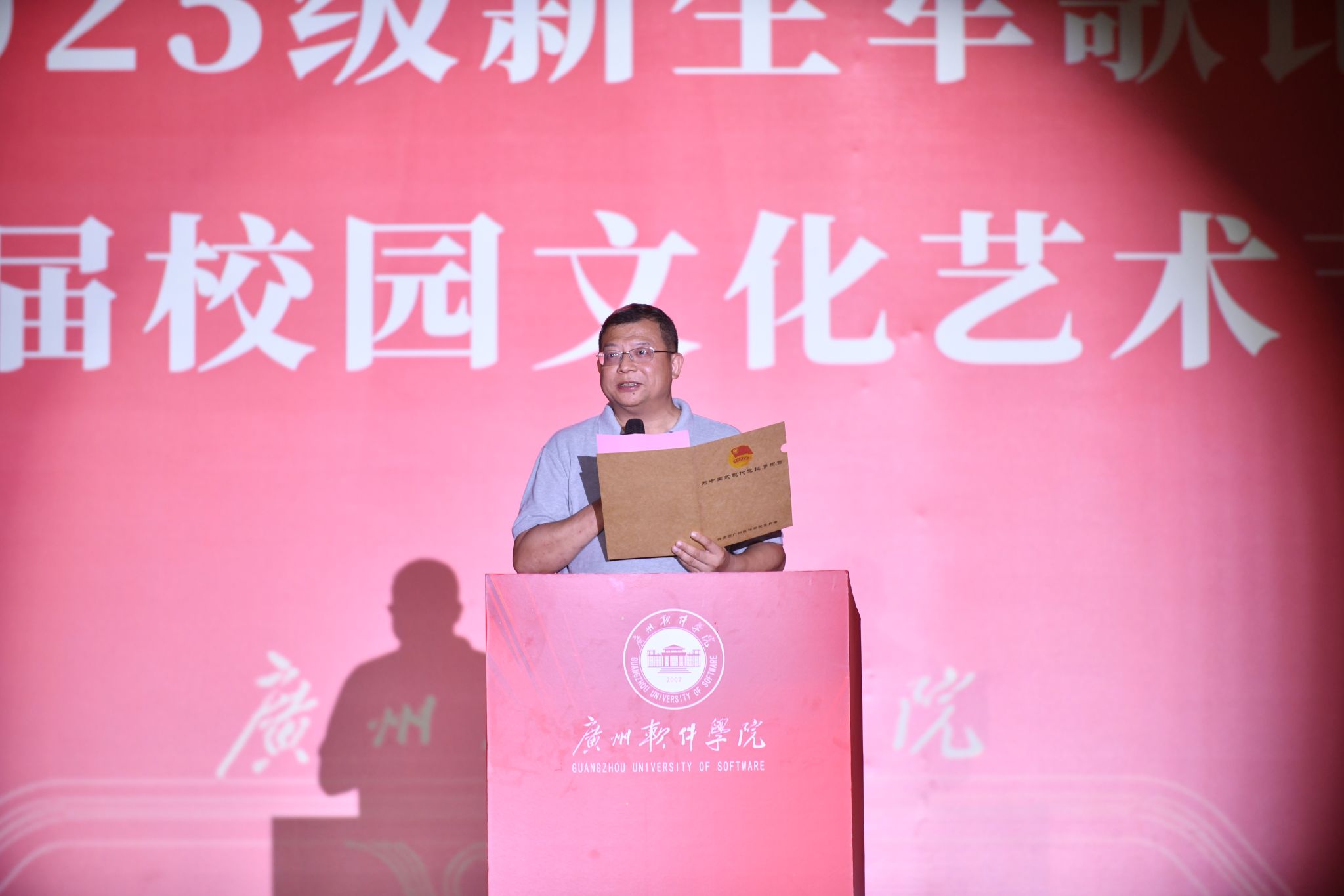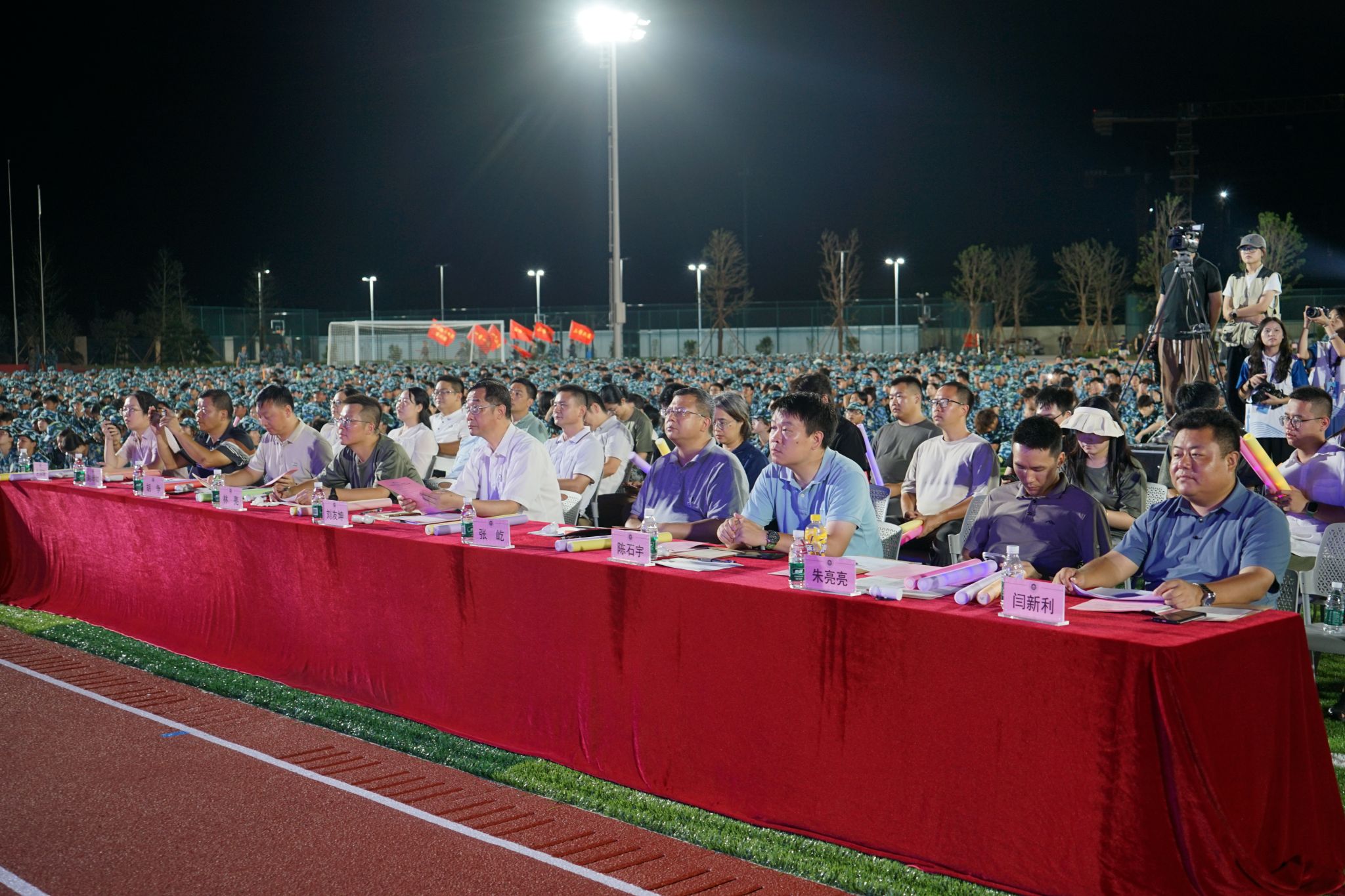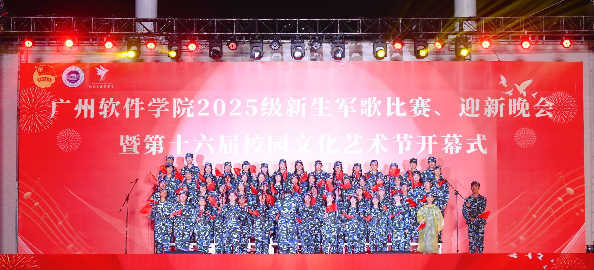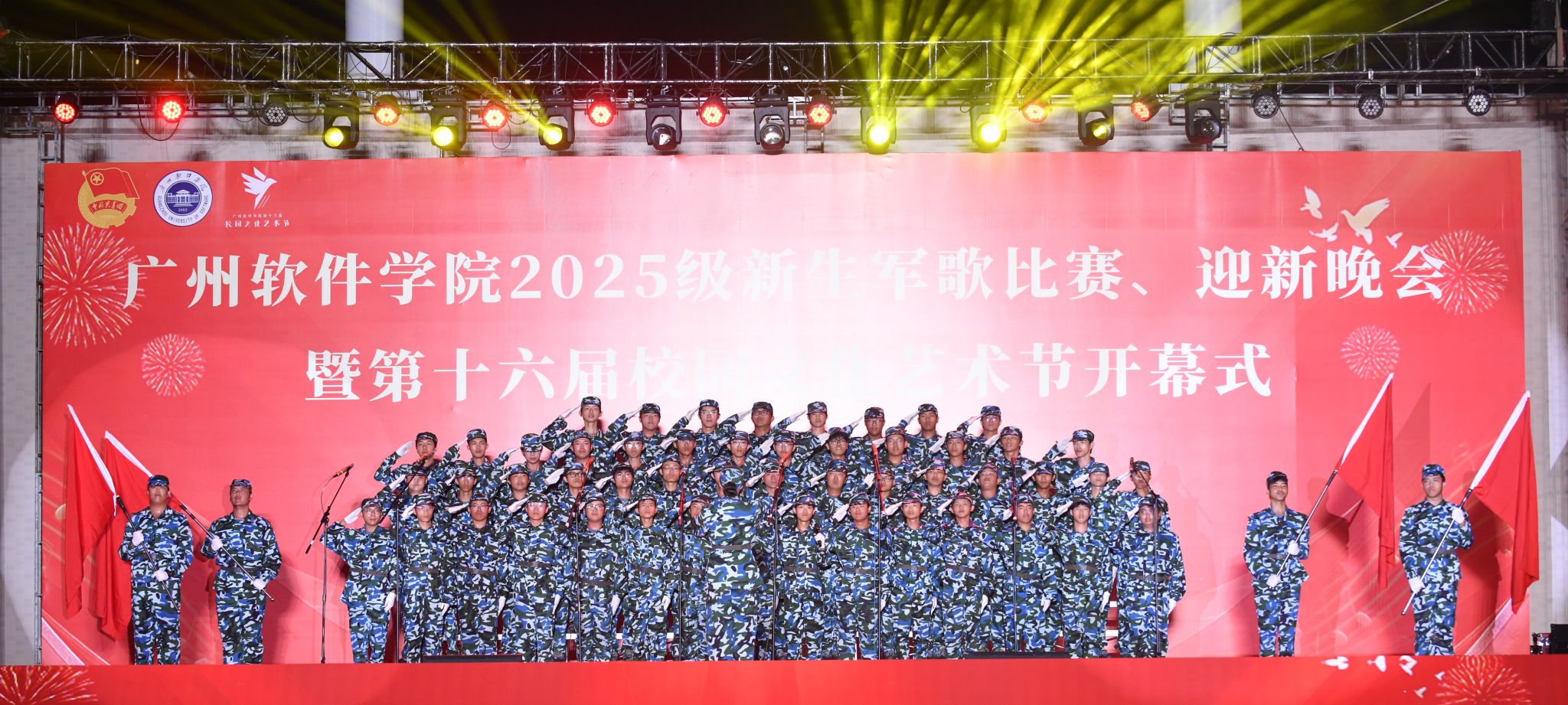 本网讯 9月27日晚,广州软件学院江门校区2025级军歌比赛、迎新晚会暨第十六届校园文化艺术节在足球场举行。学校党委书记兼督导专员刘友坤、学校副校长张屹、江门校区管委会领导、军训团各营教导员、连队指导员、新生学习导师、辅导员、全体教官、导生和2025级普本新生共同观看比赛。负责本次军歌比赛评分工作的评委团,成员涵盖军训团各部门负责人,以及校团委艺术团的指导老师,他们将围绕演唱技巧、团队协作、精神风貌等维度展开综合评分。