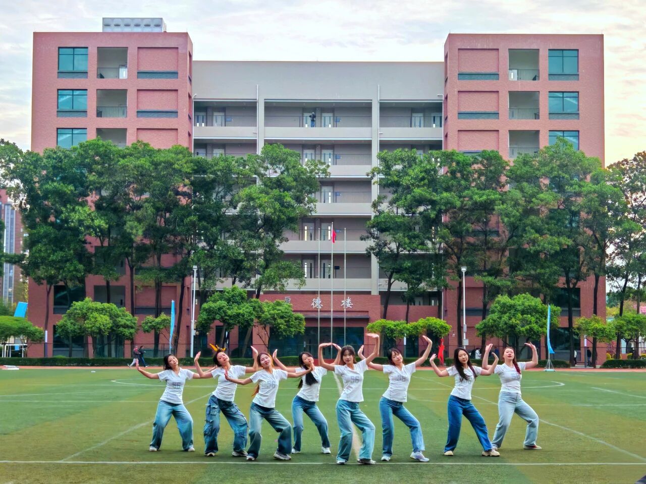 开幕式学生团体操展示(厚德楼六楼俯拍)