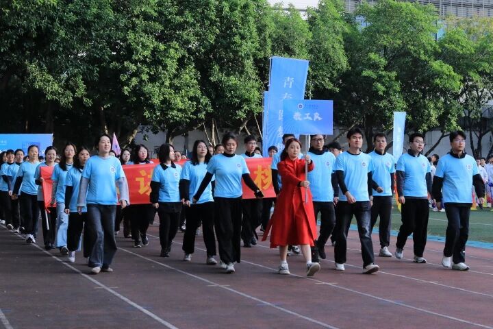 教工运动员方队由校属各单位教职工代表组成,他们不仅在平日的教学工作与管理服务岗位上勤勤恳恳,在赛场上更是精神抖擞,展现出广软教工的别样激情。