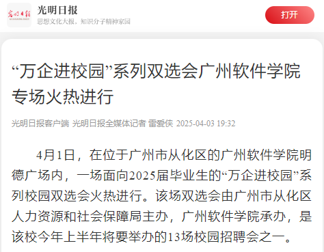 【光明日报】“万企进校园”系列双选会广州软件学院专场火热进行(2025年4月3日)