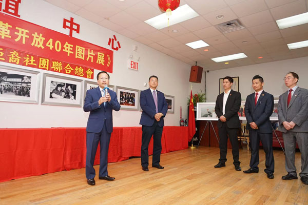2018年,梁冠军率纽约侨界举办“中国改革开放40周年图片展”