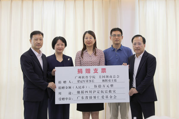 2022年9月,美国美东华人社团联合总会主席梁冠军、美国潮商总会主席林辉勇捐款50万元驰援四川泸定抗震救灾