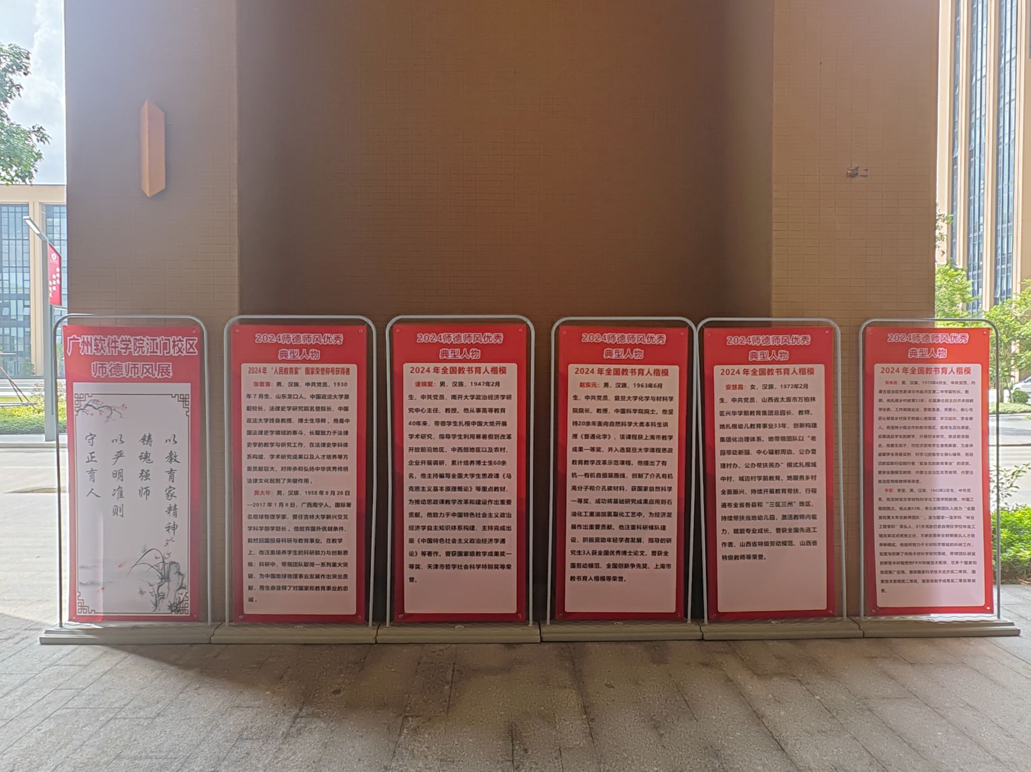 为保障展览实效,江门校区管委会对各二级学院、职能部门提出要求:需将展览作为师德建设主题教育月重要活动,指定专人组织教职工分批次参观,确保全员参与;教职工需结合岗位思考,各单位可组织专题研讨,围绕“践行教育家精神”“防范师德风险”交流心得。