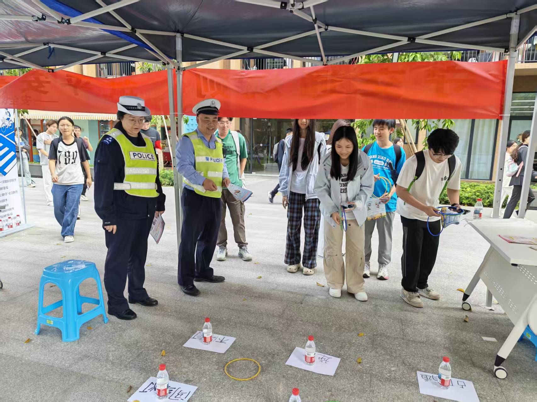 本次江门校区安全保卫办公室把摊位设在宿舍门口,意在“送交通安全知识上门”——用游园、集赞、套圈这些同学们日常就爱玩的形式,把知识藏进游戏里,让安全意识在欢声笑语中自然生长。