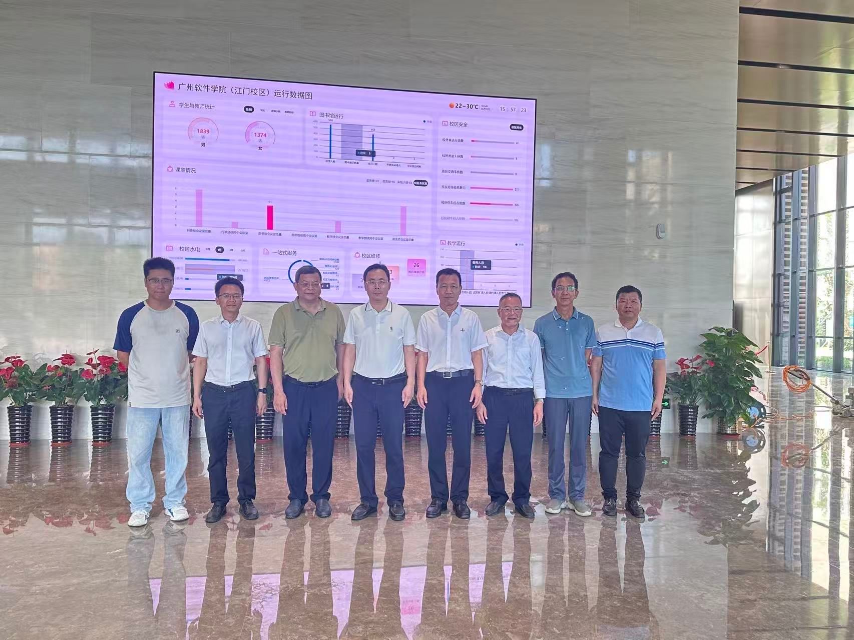 调研结束后,双方领导在行政楼校区运行图前合影留念。