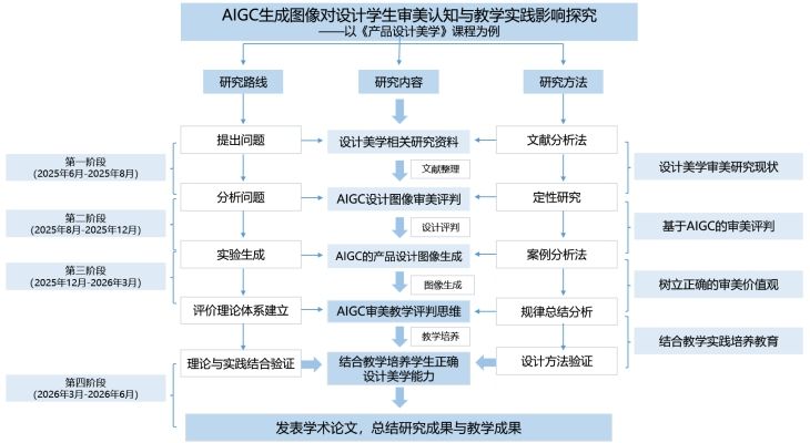 AIGC 生成图像对设计学生审美认知与教学实践影响探究--以《产品设计美学》:本课题深入分析AIGC图像的特点,如生成效率高、风格多样性、创意性强、数据驱动性等,探讨这些特点如何与设计审美教学的各个环节相互作用。运用问卷调查法和访谈法,针对民办院校的教师和学生开展调查。分析 AIGC 图像在《产品设计美学》课程中的实际应用现状和存在的问题,为后续提出优化策略提供依据。通过案例分析,引导学生深入剖析优秀的设计作品中 AIGC 图像的应用技巧和审美价值。在教学评价体系方面,构建涵盖学生审美感知、审美理解、审美创造等多维度的评价指标,将 AIGC 图像使用效果纳入评价范畴,从创意性、审美性、技术性等多个角度评价学生的学习成果,以科学评估学生在 AIGC 时代的审美学习成果,促进教学质量的提升。