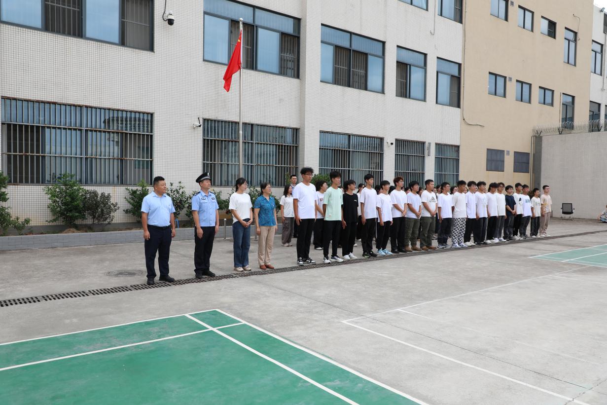 二、入监教育,触动心灵。随后,教育科干警们带领师生前往监狱十三监区,观看了刚入狱一个多月的服刑人员接受入监教育的场景。服刑人员列队、做体操、背诵三字经、进行手语表演《感恩的心》,这些画面深深触动了同学们的心灵,真切感受到失去自由的痛苦和对新生的渴望。