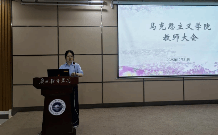 本网讯 近日,广州软件学院马克思主义学院(以下简称“马院”)以“线下为主、线上衔接”的形式召开全体教师大会。马院院长丁邦友、书记刘朝霞、副院长周跃龙,教学督导员吴小强教授及全体教师参会,聚焦思政课提质增效、评估准备、科研申报等核心任务系统部署工作,切实坚守思政教育主阵地,筑牢立德树人思想根基。