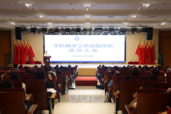 为全面启动我校本科教学工作合格评估工作,推进学校评估工作的顺利开展,并以此为契机深化本科教学改革、提高人才培养质量,推动学校教育事业高质量发展,7月4日下午,我校在学术报告厅召开本科教学工作合格评估动员大会。学校校长张强、党委书记兼督导专员刘友坤、副校长徐祥、副校长袁志、党委副书记兼纪委书记张广金、副董事长助理叶倩如,全体中层干部、助理,全体专任教师、各系教务员参加了会议。会议由刘友坤主持。