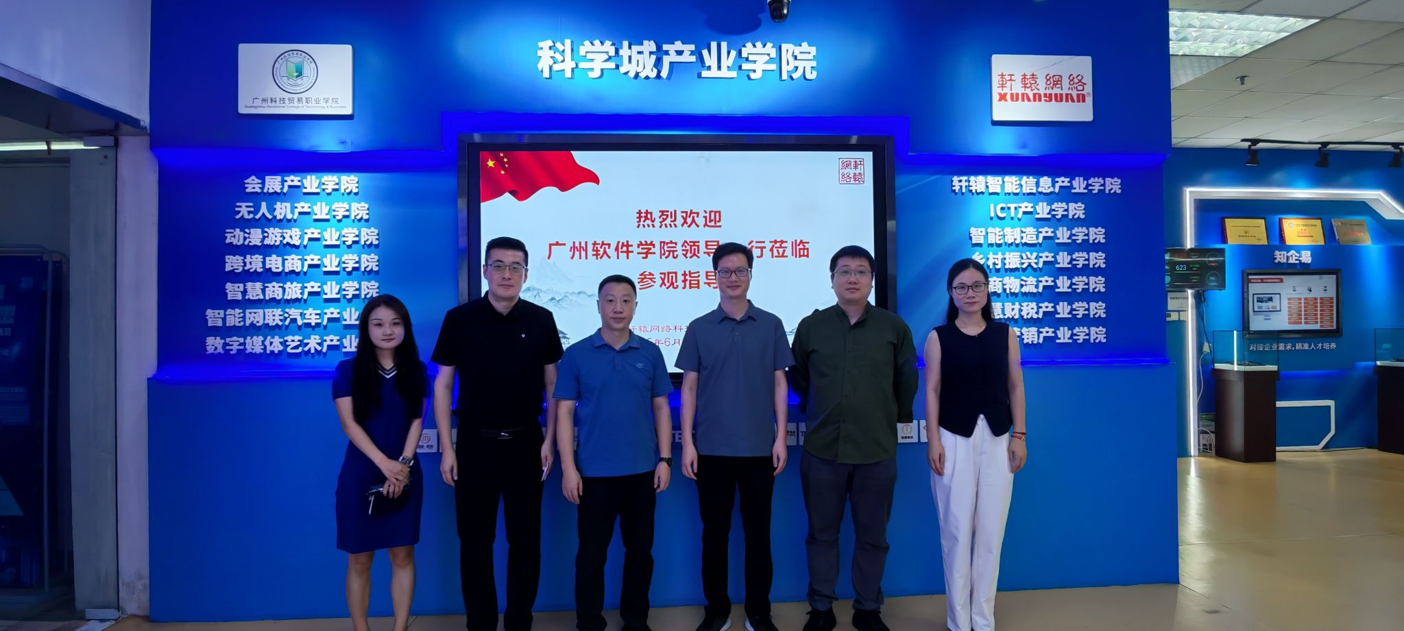为进一步深化产教融合,探索校企协同育人新路径,2025年06月11日上午,在广州软件学院教务处处长张明军教授的带领下,软件与人工智能学院副院长潘正军、数据科学与大数据技术专业负责人谭翔纬一行人赴我校与广东轩辕网络科技股份有限公司(以下简称“轩辕网络”)共建的校外实践教学基地——广软&广东轩辕实践教学基地进行现场调研,期间受到轩辕网络副总裁周林燃、伍世梨的热烈欢迎。   轩辕网络和我校来访人员共同参观了位于广州黄埔区科学城的城产业学院。...