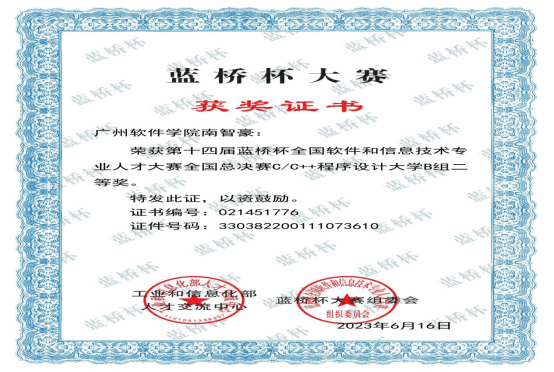 林贵蓝 2023届计算机科学与技术专业优秀毕业生成功考取长江大学研究生。