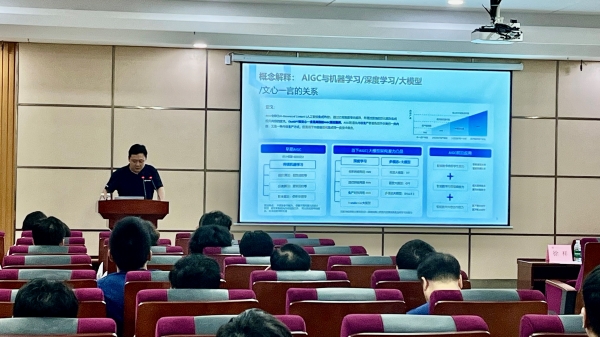 签约仪式结束后,百度智能云资深解决方案工程师王江天为师生做大模型和软件开发新型实践主题报告。