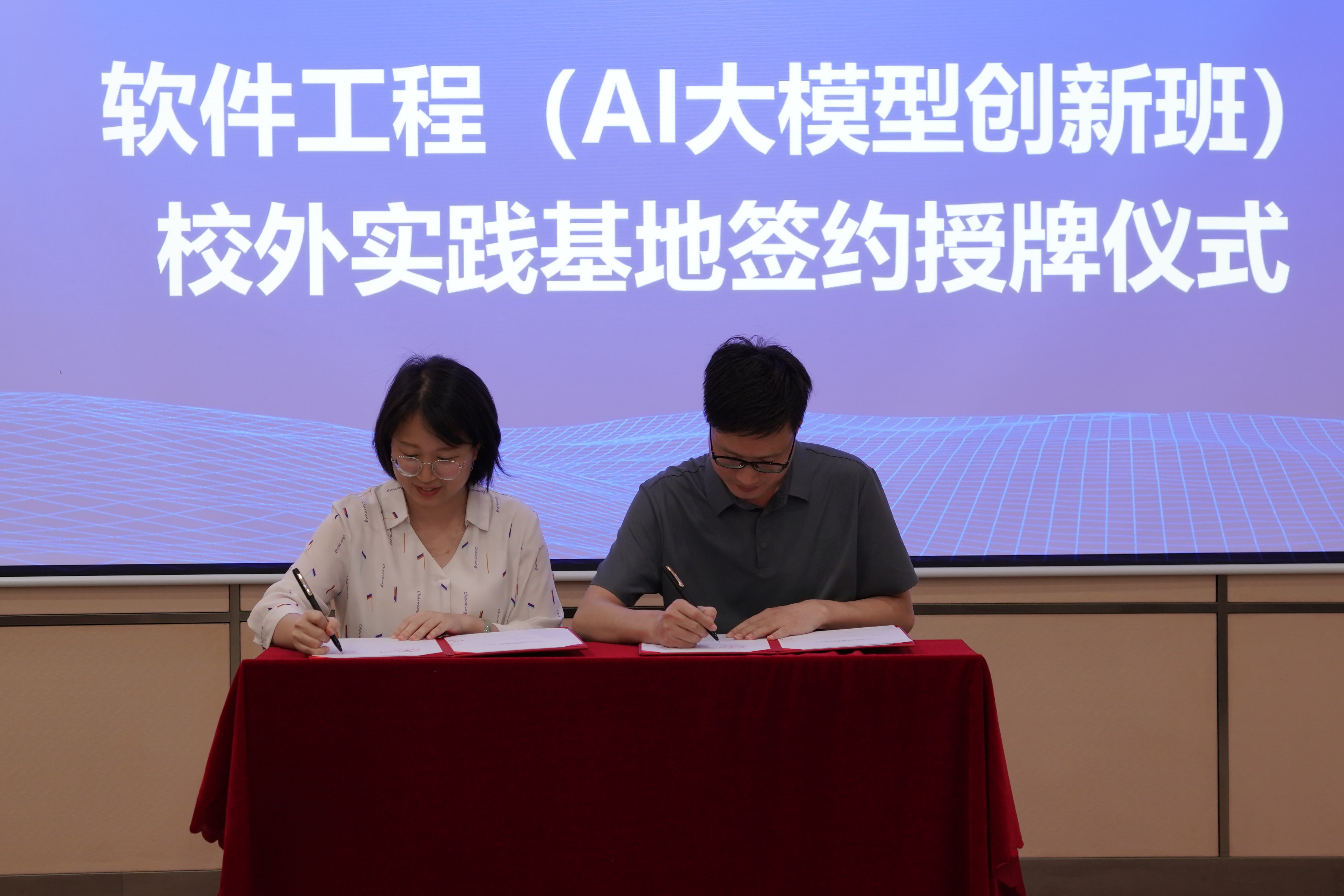本网讯6月25日下午,广州软件学院与百度智能云联合开办软件工程专业(AI大模型创新班)签约仪式暨大模型和软件开发新型实践主题报告会在学校国际报告厅举办。百度智能云教育行业解决方案总监谭承轩、华南区域经理于博、百度智能云资深解决方案工程师王江天,百度飞桨(广州)人工智能产业赋能中心/广东粤桨产业科技有限公司总经理李慧文、解决方案总监廖启丰、生态拓展经理代翠翠,广州软件学院校长张强、副校长徐祥、副校长袁志,学校教务处、软件工程系、计算机系、网络技术系、游戏系、数字经济与管理学院、外语系、基础部、思政部、招生办、产业学院负责人及软件工程系师生代表出席相关活动。