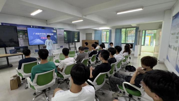 为助力我校高层次应用型人才培养,进一步推进科产教融合,培养与产业需求精准对接的高素质人才。2024年10月22日,广州软件学院(以下简称“广软”)与中科智城在“广州软件学院-中科智城科产教融合基地”联合举办了“2024年广软实习生培训营开营仪式”,参加本次开营仪式的有中科从城副总经理曾熠、中科智城项目总监刘雄飞、项目经理孙太伟、研发部后端组长黄超、广软软件工程系智能软件开发教研室主任李祎等校企嘉宾。在中科从城曾熠副总经理的主持下,本次培训营经过前期的企业宣讲、简历筛选、面试选拨等环节,共选拨出16名学生参加集训,标志着双方在人才培养合作上迈出了坚实的一步。