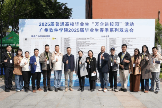 本网讯 为促进学校毕业生更充分更高质量就业,2025年4月2日,软件与人工智能学院的领导、老师们参加了2025届普通高校毕业生“万企进校园”活动·广州软件学院2025届毕业生春季系列双选会(从化地区专场)现场开展访企拓岗促就业专项行动工作。