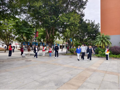 志愿者们被分配到四个主要执勤区域:红棉楼门岗外、女生宿舍断桥前、明德广场、STU 教学楼前。他们身穿红色志愿马甲,手持指引卡,温情提醒同学们保持着装规范,不穿拖鞋进入教学区域,同时避免携带早餐进入教室,维护课堂环境整洁;倡导爱护校园内的绿植与公共设施;督促大家在公共区域保持轻声交谈,避免喧哗吵闹,共筑文明学习氛围。