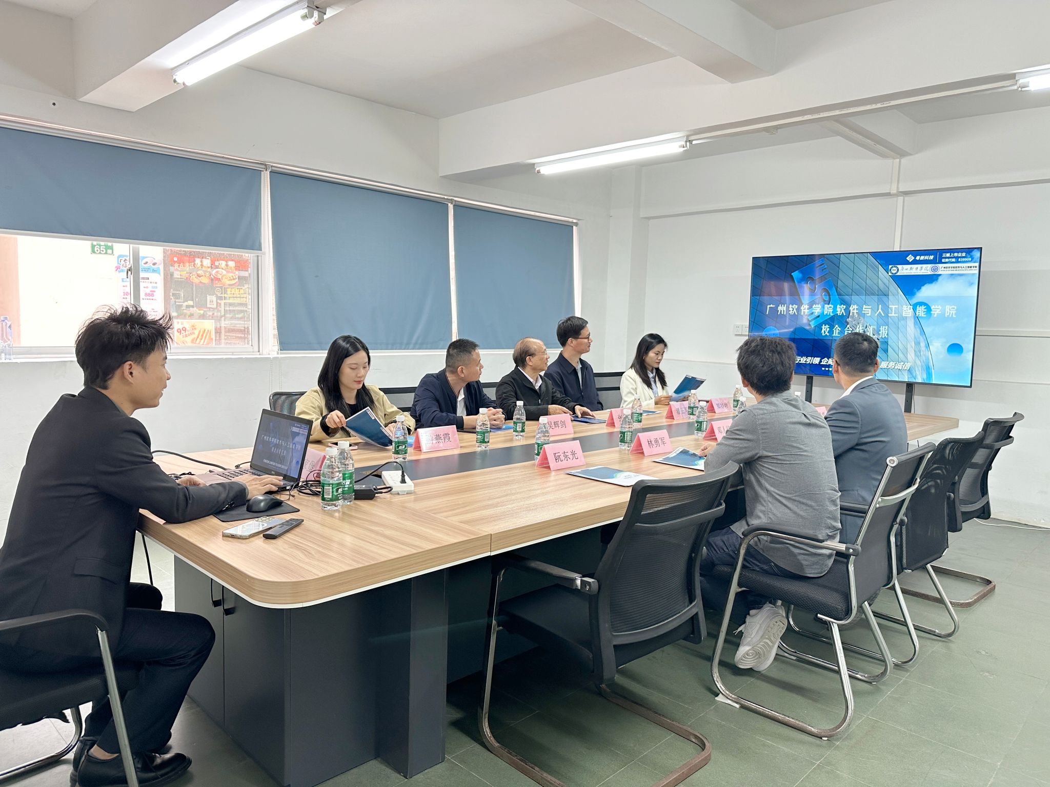 为进一步推动校企合作深度融合,2025年11月12日上午,软件与人工智能学院院长张晓龙、党委书记吴辉剑、副院长潘正军、学工办主任游燕霞和辅导员郑妙玲一行走访广州粤嵌通信科技股份有限公司,与公司总经理邓人铭、人才孵化院院长林勇军和校企合作总监关家堡进行深入交流。本次走访以“深化校企合作,共促学风育英才”为主题,通过实地调研考察和面对面合作交流,共同探索协同育人新路径,为培养高素质人才注入新动能。