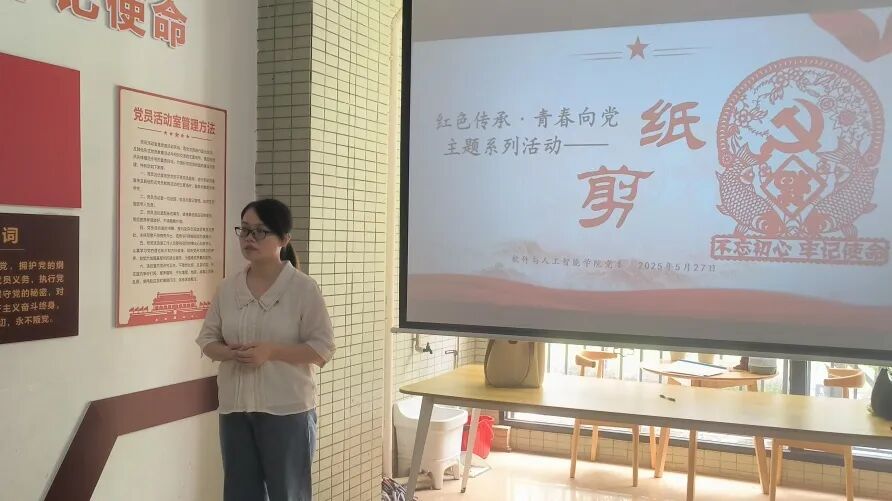为传承红色基因,激发青年党员爱国情怀,软件与人工智能学院第一党支部于5月27日在红色小筑举办“红色传承・青春向党”主题剪纸活动。学院党委书记吴辉剑老师,学生党支部书记陈玉菲老师以及各学院学生党员及入党积极分子代表参与此次活动。