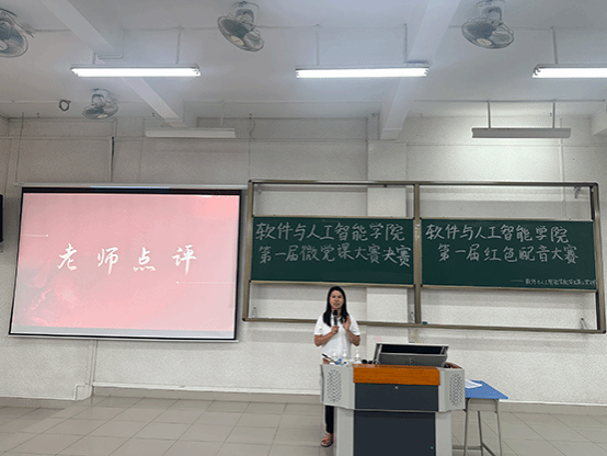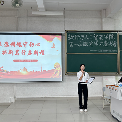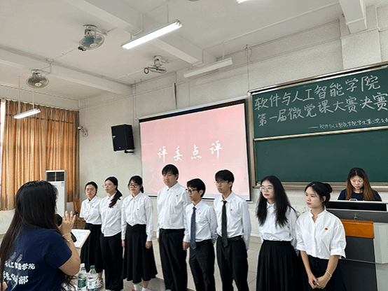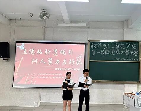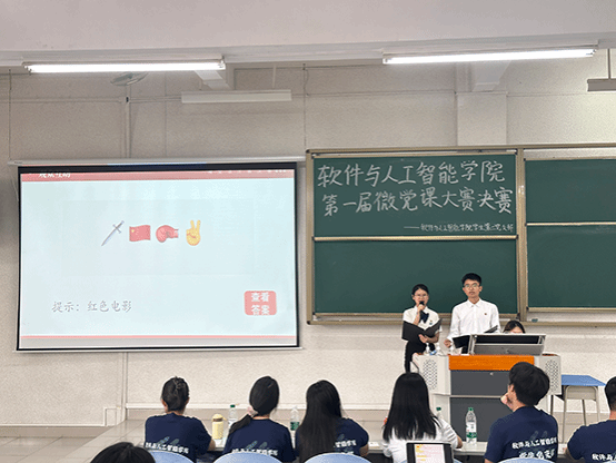 为深入学习贯彻习近平新时代中国特色社会主义思想和党的二十大精神,软件与人工智能学院党委于6月3日14:00在T301教室举行“立德拓新遵规引 树人聚力启新航”微党课&红色配音大赛决赛。软件与人工智能学院学生第二党支部书记谭斯韵老师以及学生党支部同志们参与本次大赛。本次大赛由陈慧诗同志、李星同志共同主持。