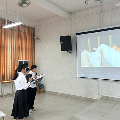 在微党课大赛方面,谭斯韵老师对各参赛队伍的表现表示肯定。同时,谭斯韵老师建议大家精心设计党课,避免单一讲述。其中可加入视频突出主题和PPT制作时设置重点字等,让党课内容更清晰、生动。在红色配音大赛点评中,谭斯韵老师称各队伍感情充沛、发音有力、眼神坚定、台风好且熟悉内容,这都是多次锻炼的结果。在党员工作方面,谭斯韵老师认可大家的悉心准备,从未放松流程把控,能灵活应对问题,并鼓励大家思考如何提升未来活动质量。最后,谭斯韵老师希望大家将每次活动视为锻炼契机,而非负担,从中激励大家不断成长。