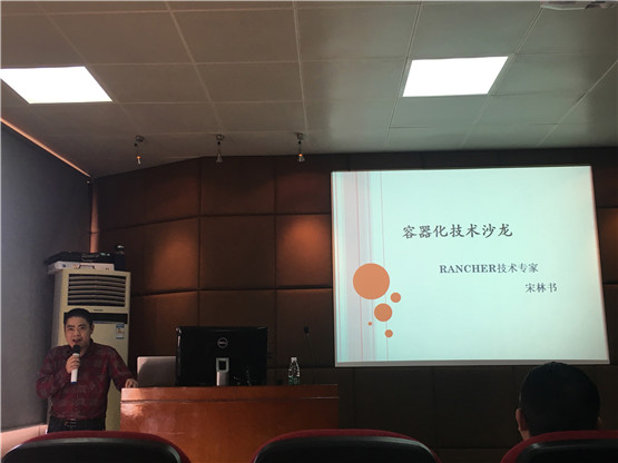 本网讯 2019年12月14日下午2点,Rancher技术专家宋林书工程师应邀到软件工程系开展容器化技术沙龙,沙龙地点在综合楼3楼会议室进行。软件系张屹主任,陈孝如副主任,软件工程系教师和软件系学生一起参与了此次学习交流。此次沙龙由软件系林若钦老师主持。