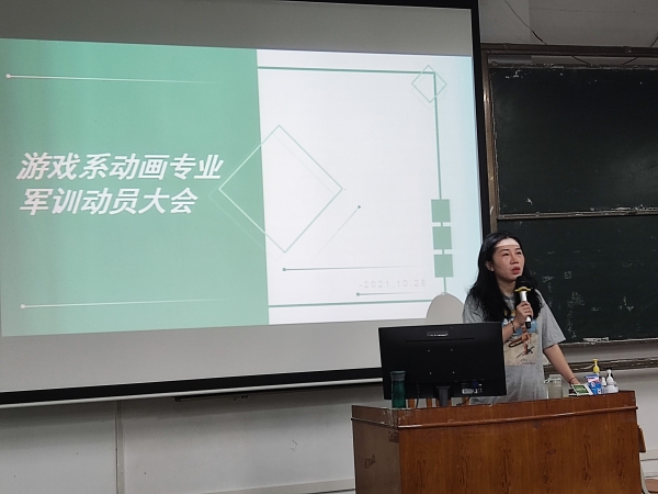 会议最后,游戏系辅导员杨雅茜老师进行了总结发言,她真挚地祝愿新生们能顺利完成军训,也希望游戏系在本次军训中取得好成绩。