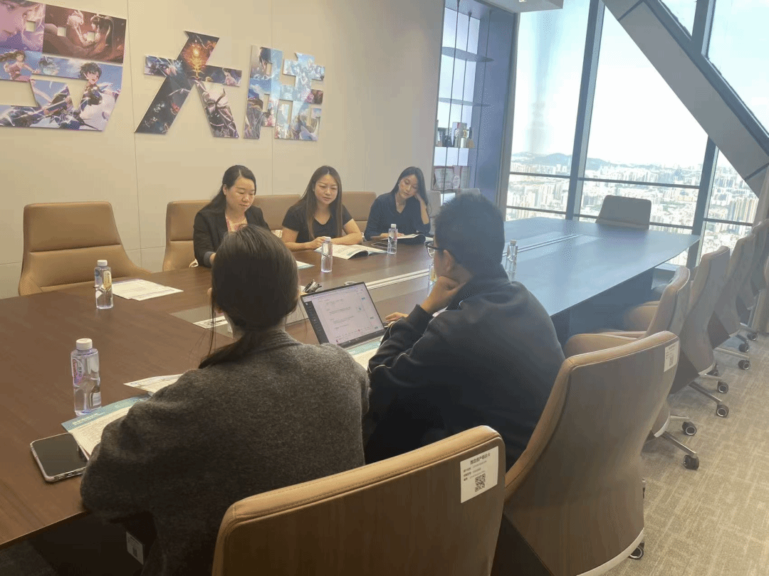 在公司代表江蕾的陪同下,许恒梅书记一行深入了解企业从发展历程到业务布局的全貌,公司不仅通过与古天乐、孙红雷、刘亦菲等知名艺人深度合作提升品牌影响力,为持续发展奠定坚实基础,2020年公司迁至广州并拥有两栋共8层的独立园区。企业自2023年启动海外发行,迅速覆盖韩国、港澳、越南、欧美及日本等多地区,并于2024年取得亮眼成绩,同年推出的SLG战争型与塔防类游戏,推动用户群体从重度玩家向全年龄层拓展。目前,公司已布局2025年与运营商深度合作,手握《天龙八部》《笑傲江湖》等知名游戏IP及多款独家代理产品,发展潜力十足。