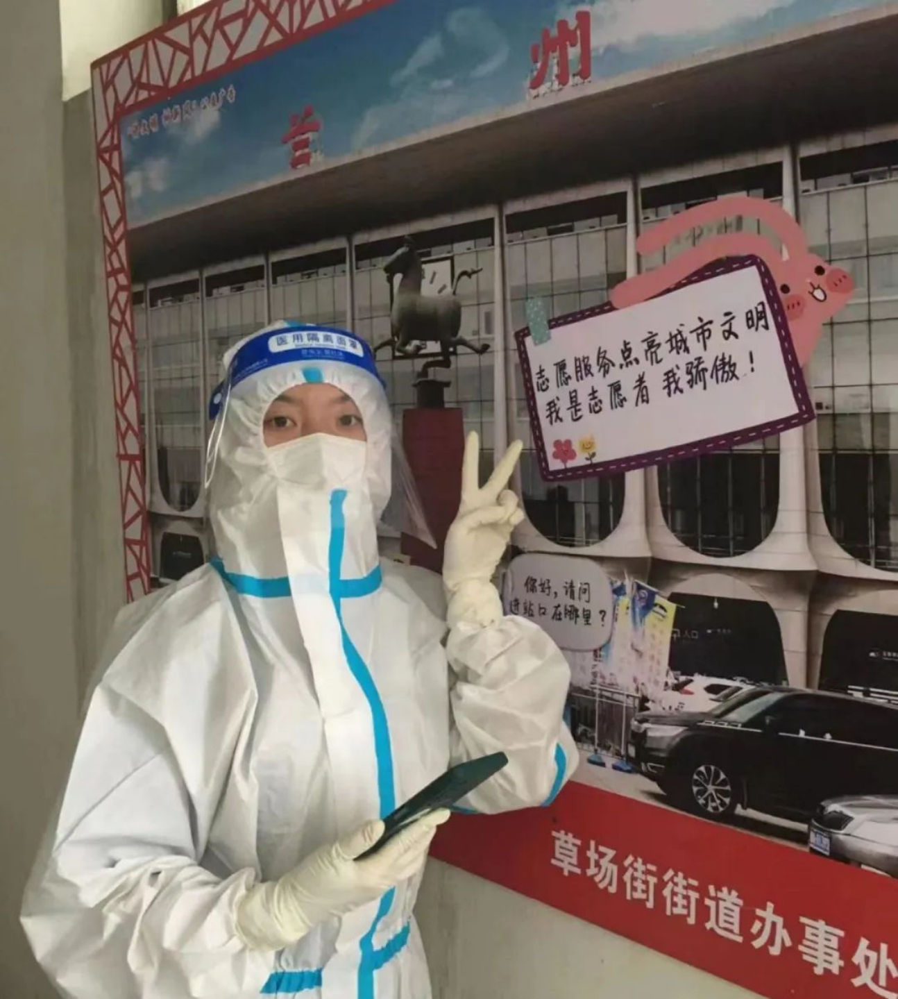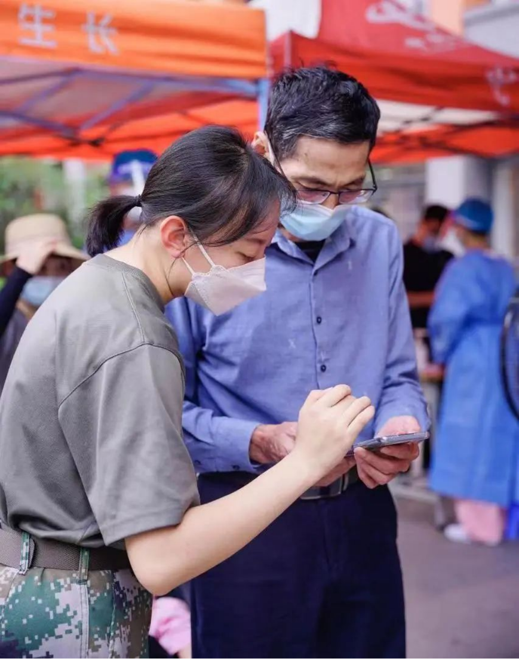 韩佳蓉在学校参加核酸志愿活动