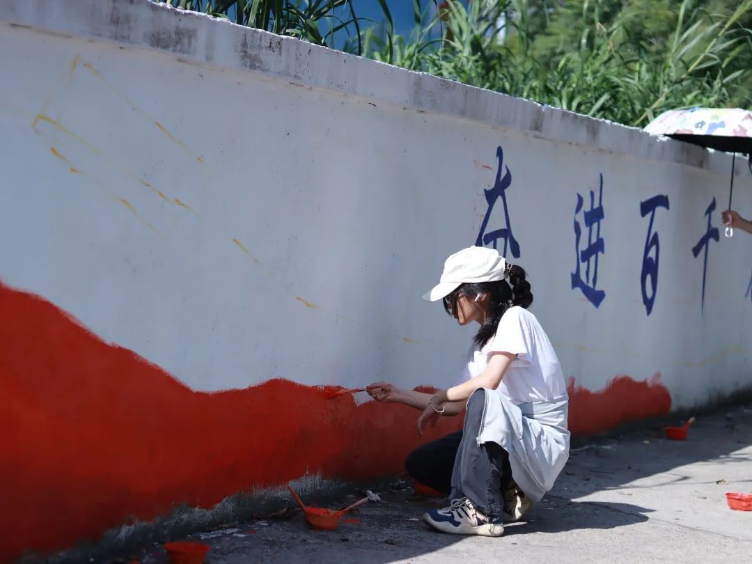 在大二的暑假里,为了积极响应广东省委,省政府号召,“百千万工程”、"绿美广东"全面落地,她跟随广州软件学院游戏系艺术扶苗志愿队太平分队在从化区太平镇的开展三下乡活动,作为志愿队里传媒组的一名成员不仅记录下了墙绘的全过程,还协助墙绘组如期完成了该阶段的墙绘任务,和墙绘组并肩作战,在太平镇的白墙上绘制宣传标语,太平地标与各村代表物。