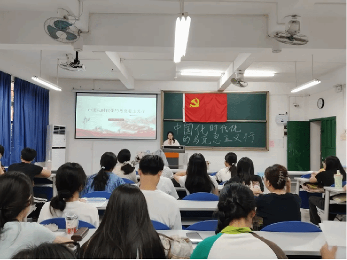 4月20日上午,马克思主义学院常家瑶老师以《中国化时代化的马克思主义行》为题,为学员带来一场思想启迪讲座。常老师以PPT和视频相结合的形式介绍了马克思和恩格斯生平,深入剖析了马克思主义诞生的背景,系统阐述马克思主义中国化的重大理论成果,有力论证马克思主义的强大生命力。她强调,马克思主义中国化时代化的意义不仅在于理论创新,更在于为解决“中国之问、世界之问、人民之问、时代之问”提供思想武器,在乡村振兴等伟大实践中让不可能变为可能。课程尾声,她以“惜时、担当、养德”六字寄语,寄托对学员的殷切期望。