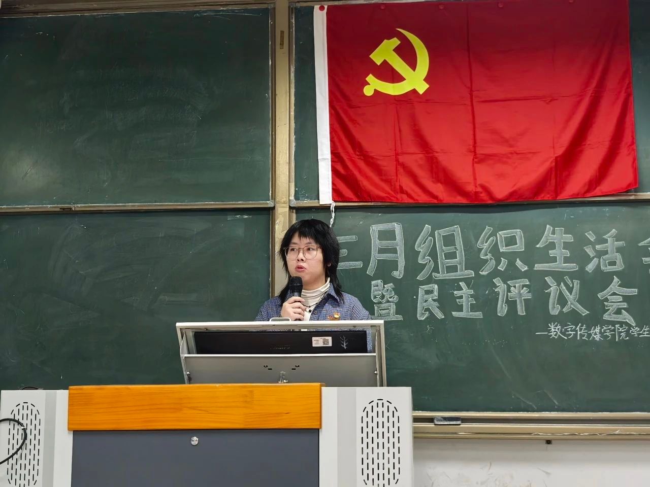最后,数字传媒学院学生第一党支部书记麦天颖老师进行总结发言。麦老师指出本次民主评议会,不仅是对过往工作的梳理,更是一次深刻的反思与展望。她强调,开展批评与自我批评是我们党的优良传统和作风,是保持党的先进性和纯洁性的重要法宝。通过坦诚的批评与自我批评,能够及时发现和纠正工作中的不足,促进党员个人成长和党组织建设。未来,我们将以此次民主评议为契机,进一步健全党内政治生活,坚持问题导向,持续改进工作作风;积极探索多样化学习路径,借助"校友党员先锋说"等项目强化党员专业素养;同时要求全体党员以更高的标准严格要求自己,在批评与自我批评中不断锤炼党性,在实践中发挥先锋模范作用,让党员力量在学习、生活各方面全面彰显,为推动学院发展和党的建设作出新的更大贡献。
