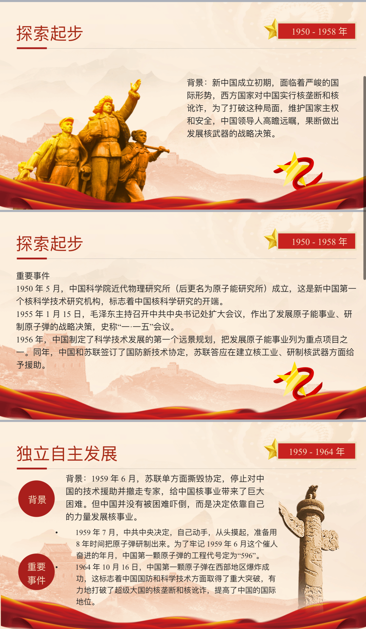 会议伊始,王晓儿同志化身为“历史讲解员”,通过详实的史料和生动的讲述,带领同学们回溯我国核事业从无到有、从弱到强的艰辛历程。从1950年中国科学院近代物理研究所成立,开启与苏联合作探索的第一步,到1959年面对苏联毁约,党中央毅然决定独立自主研发原子弹,再到1964年第一颗原子弹成功爆炸,打破超级大国核垄断,以及1967年第一颗氢弹爆炸、1970年第一艘核潜艇下水,每一个关键节点都让同学们深切感受到老一辈科研工作者们“敢上九天揽月”的无畏勇气与创新精神。借助珍贵历史影像,那段激情燃烧的岁月跃然眼前,入党积极分子们仿佛穿越时空,见证了中国核事业从蹒跚学步到大步跨越的伟大征程。