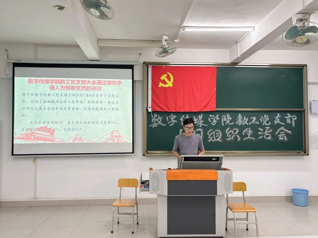7 月8 日,数字传媒学院教工党支部召开接收新党员通表大会,旨在吸纳优秀人才加入党组织,为党组织注入新鲜血液。