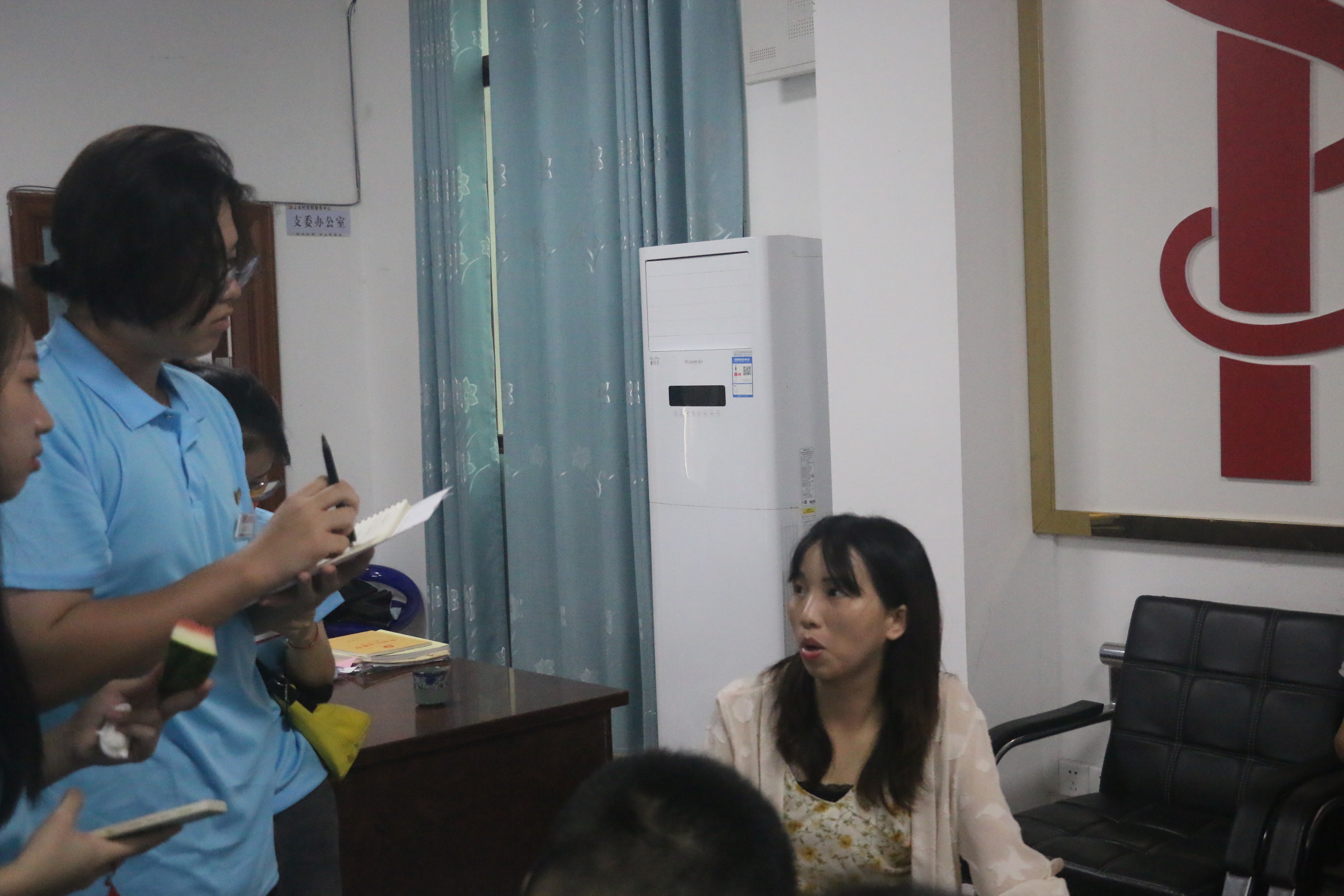 而星星之火小组也以北乡镇为中心,开启了访谈之路,首先访问了文电法规室副主任、市直机关团委副书记黎广炽书记。黎书记对调研大纲提出了不少建设性意见,向大家讲解如何将党建和电子商务相结合。紧接着,大家还访问了镇宣传委员、团委书记杨小霞书记,询问其有关北乡镇产业发展、党组织建设的相关问题。