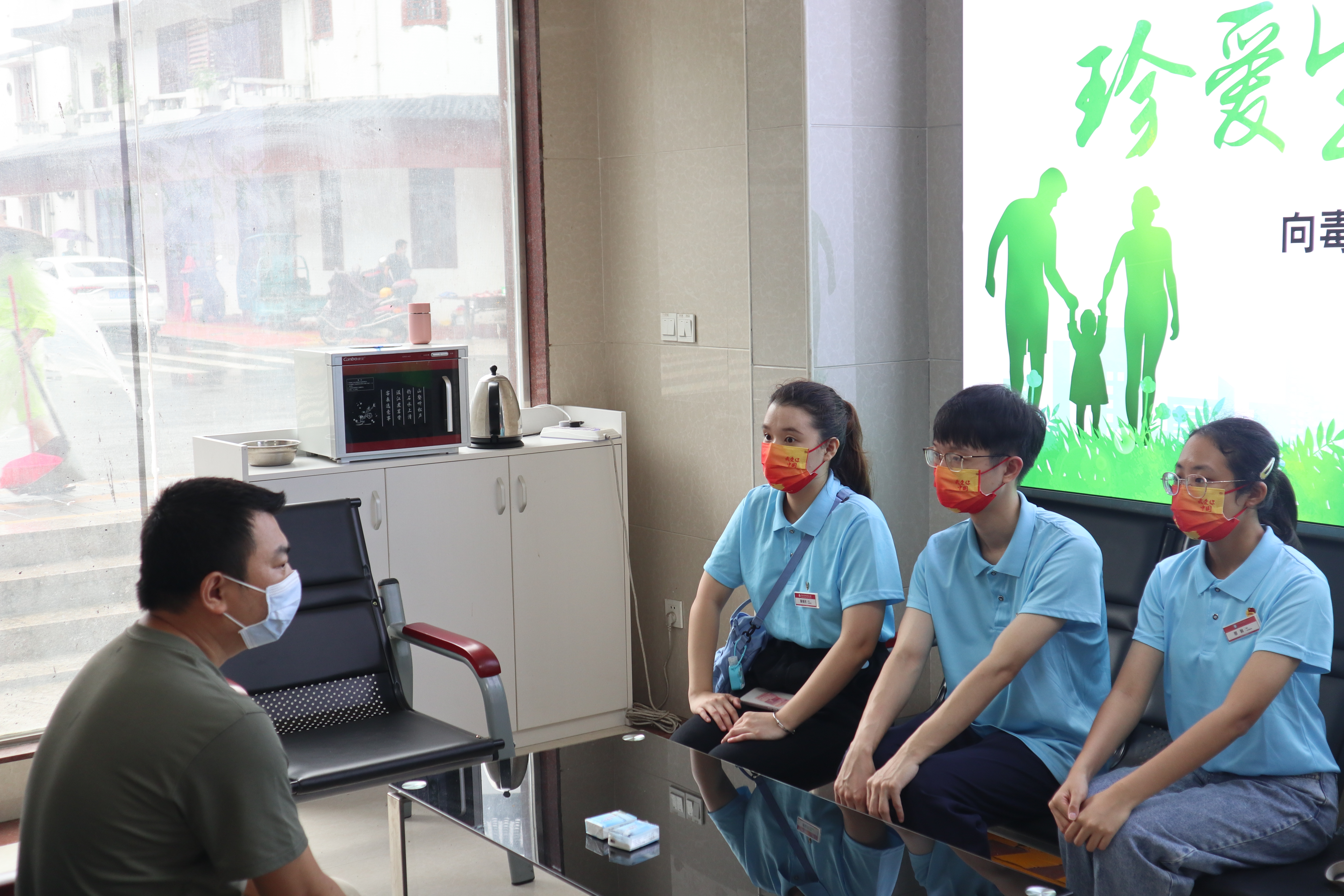 2022年7月4日,各组分别根据各自的方案前往不同的场地进行活动,心心相印组的部分组员前往北乡镇司法所与司法所所长就如何处理戒毒人员子女的帮扶问题展开访谈,通过此次访谈,大家了解到了司法所对于戒毒人员和刑满释放人员的一些心理帮扶、临时救助等情况。另一部分组员则前往北乡镇向派出所和禁毒工作站的工作人员了解有关禁毒宣传与吸毒人员管控和执行的问题。